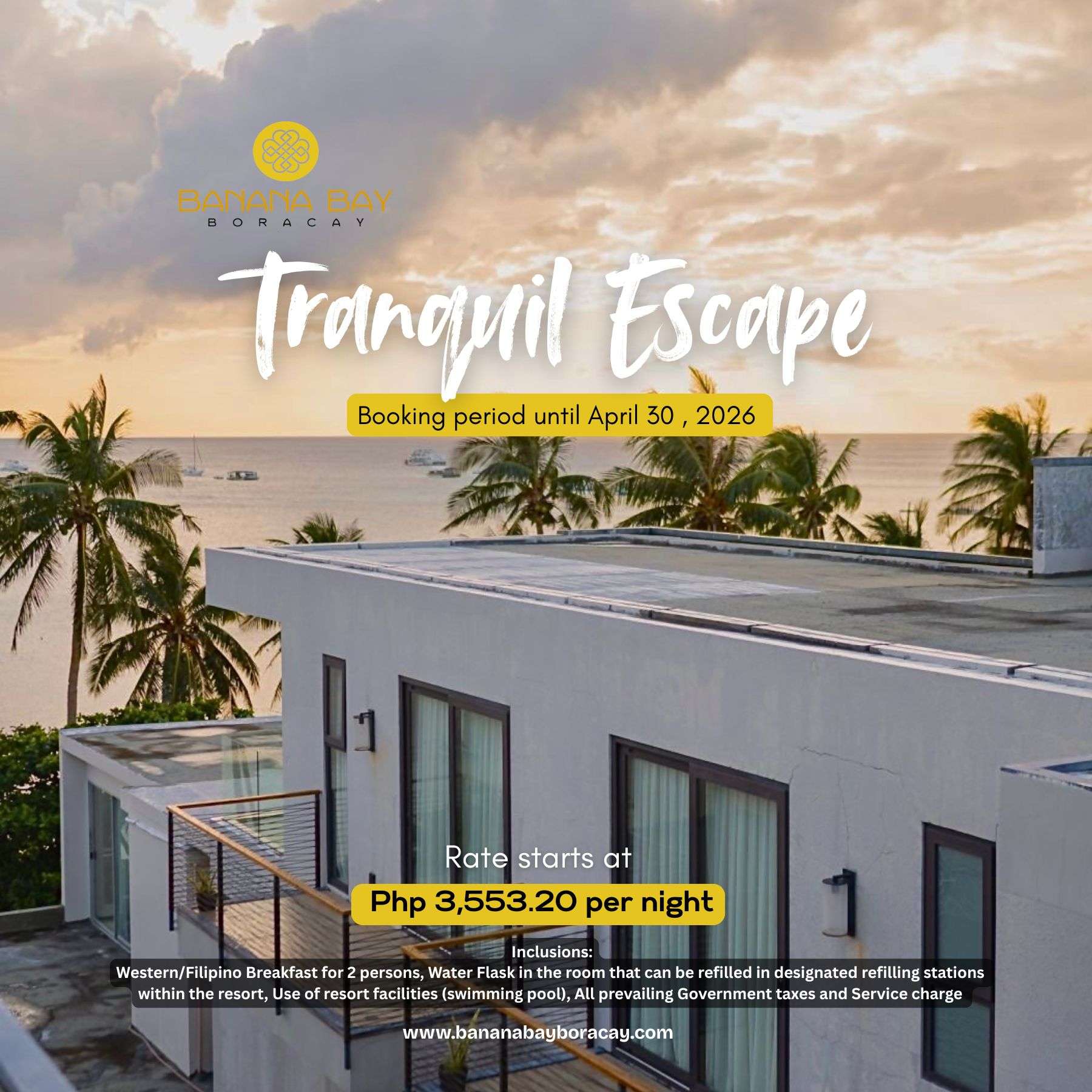 - To book, please contact reservations@bananabayboracay.com or call +63 976 191 8401